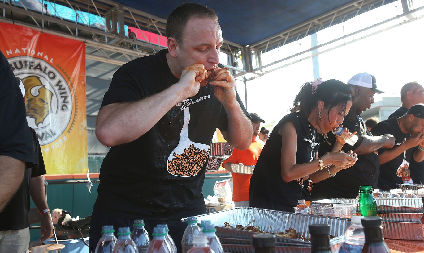 В ходе проходящего в американском Баффало фестиваля National Buffalo Wing Festival поставлен рекорд по поеданию куриных крылышек. Лучший результат показал житель Калифорнии Джои Чеснат, которому удалось съесть 191 куриное крылышко за 12 минут, передает Лента.